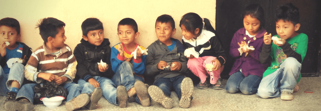 Kids enjoying their tortillas in the hall