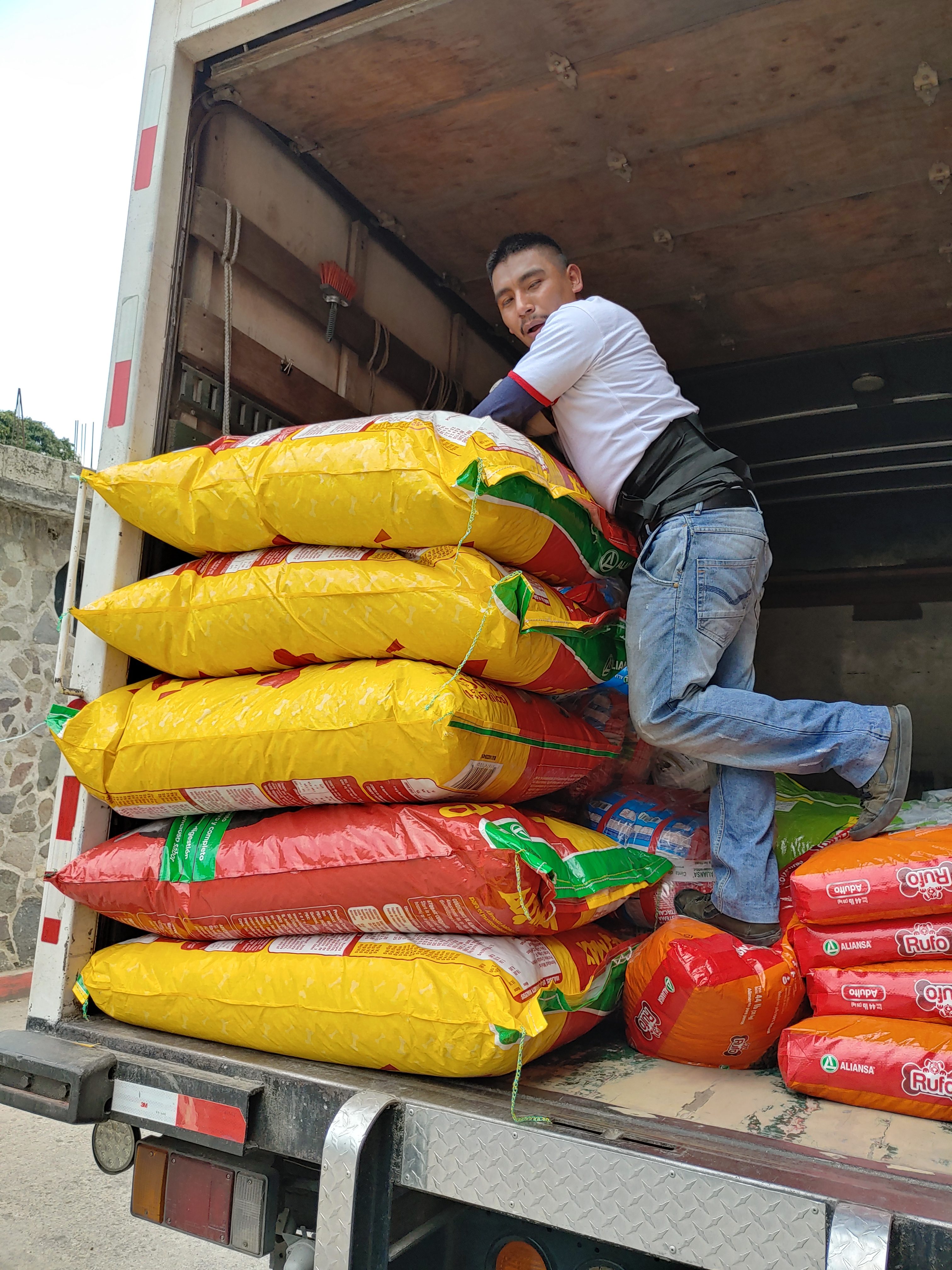 We have worked together with teams of volunteers going to places like Market Day, garbage areas and driving around local neighborhoods distributing dog food as needed by the communities.